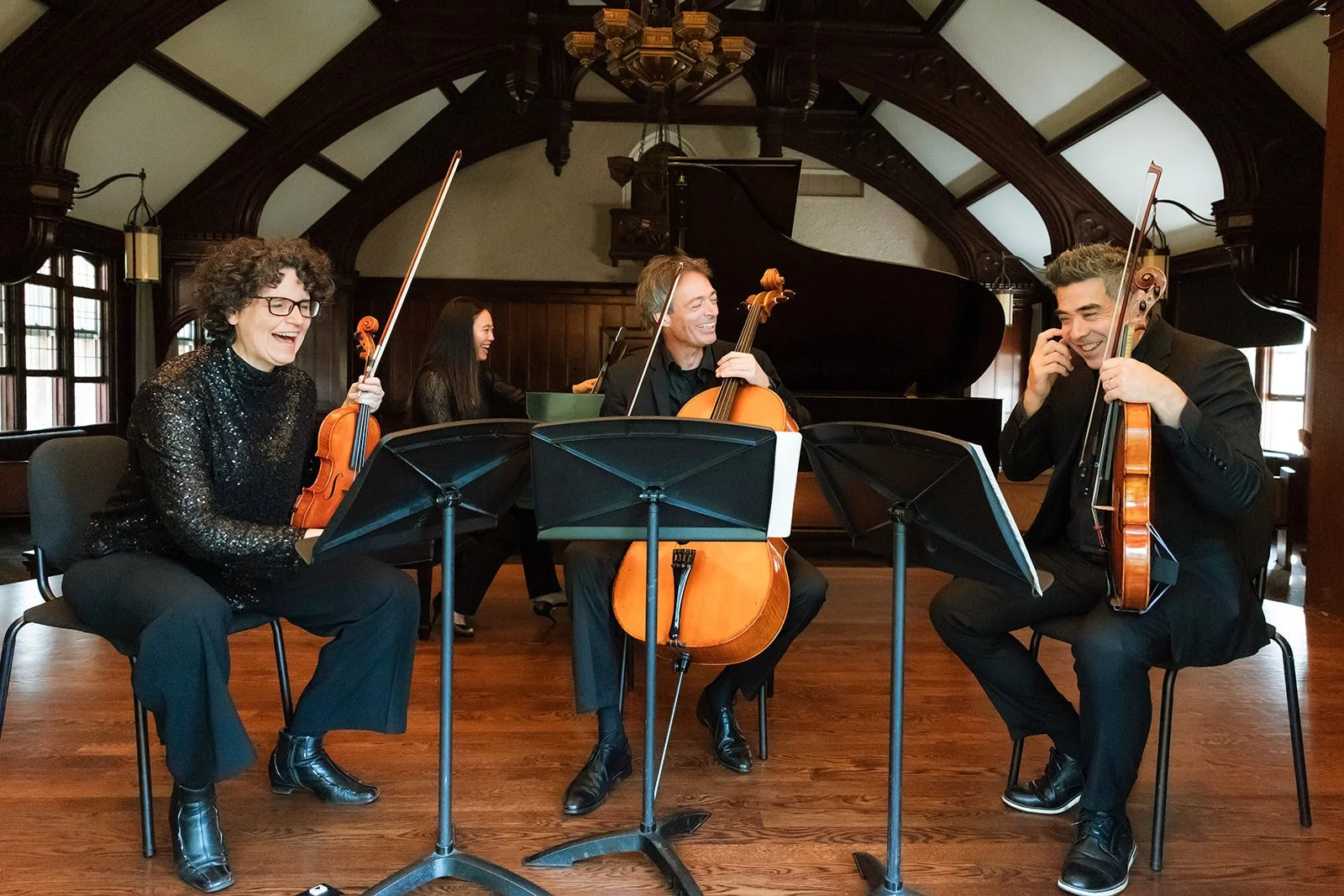 The Thunder Egg Consort is a group of seasoned performers who bring their individual talents together as a piano quartet comprised of violin, viola, cello, and piano. These graduates of some of the finest music schools in the country (Juilliard and Curtis) have won international competitions, have been mentored by wonderful musicians such as Isaac Stern, and have performed alongside artists such as Yo Yo Ma, Mark O'Connor and Harry Connick, Jr. They have recorded for Sony and Naxos, been featured on television and radio (in residence with NPR) and are able to compose and play in a variety of styles (classical, bluegrass and contemporary.) Having forged their varied careers in the New York area, these four musicians (three of whom originally hail from the Pacific North West) recently had children. They then realized that it would be much nicer to live in the Northwest again, and sold their houses and moved to Oregon. Taking their name and inspiration from the state rock, they have formed a consort and are forging new ground in their reclaimed homeland.